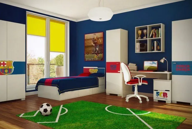 - Sports et Compétition : Ballons de foot suspendus, un panier de basket miniature, des photos de ses idoles sportives. Optez pour des couleurs dynamiques comme le vert, le bleu et l’orange.