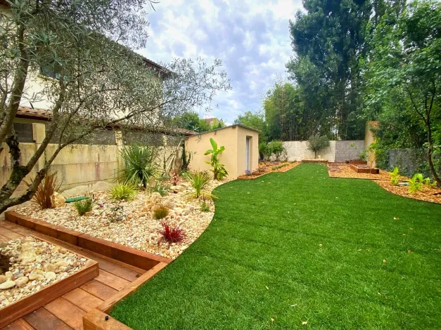 - Terrasse Familiale : Une grande terrasse avec du gazon synthétique à brins longs, idéale pour les jeux d’enfants.